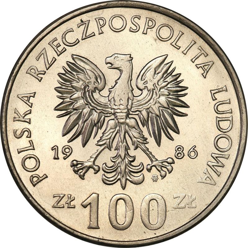 Сколько стоит никелевая монета Народной Республики пробные 100 злотых 1986 года MW SW "Владислав I Локетек", разновидность - никель?