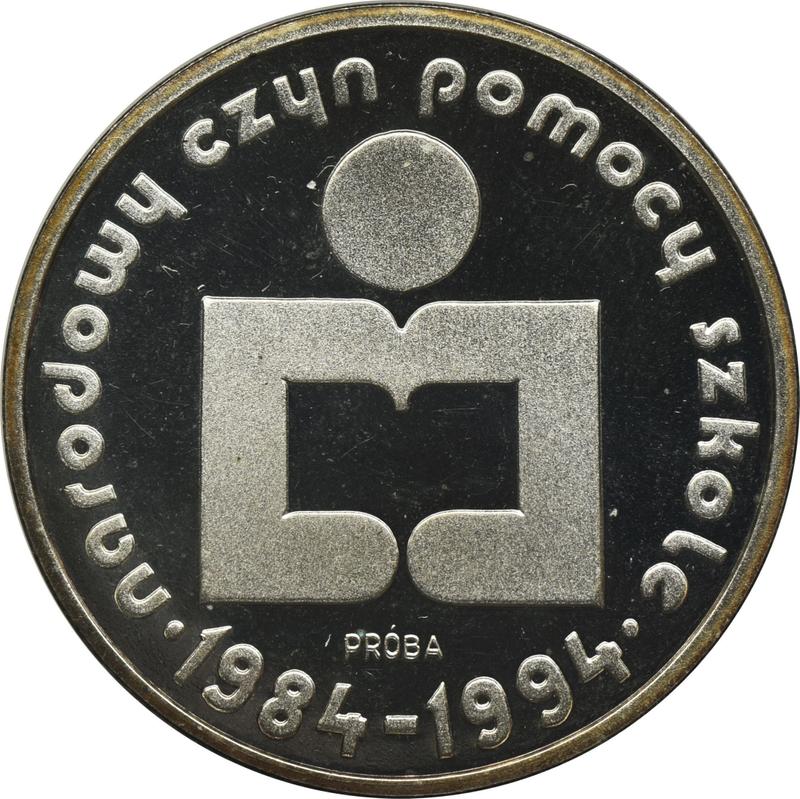Пробные 1000 злотых 1986 года MW "Национальный акт помощи школе". Серебро (Польша, Народная Республика)