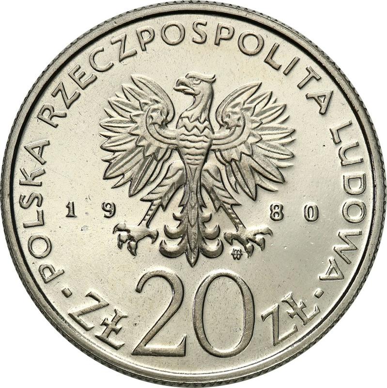 Сколько стоит никелевая монета Народной Республики пробные 20 злотых 1980 года MW "Лодзинское восстание 1905 года", разновидность - никель?