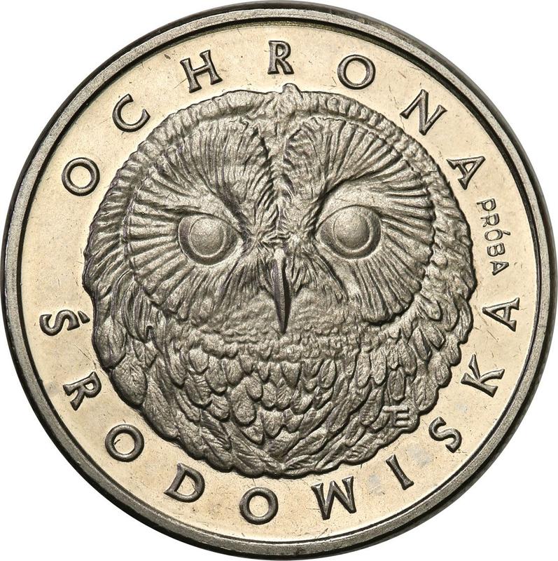Пробные 200 злотых 1986 года MW ET "Сова". Никель (Польша, Народная Республика)