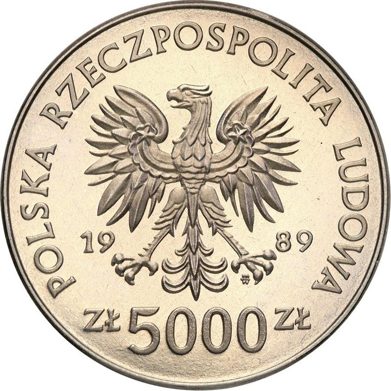 Пробные 5000 злотых 1989 года MW BCH "Хенрик Сухарский". Никель (Польша, Народная Республика)