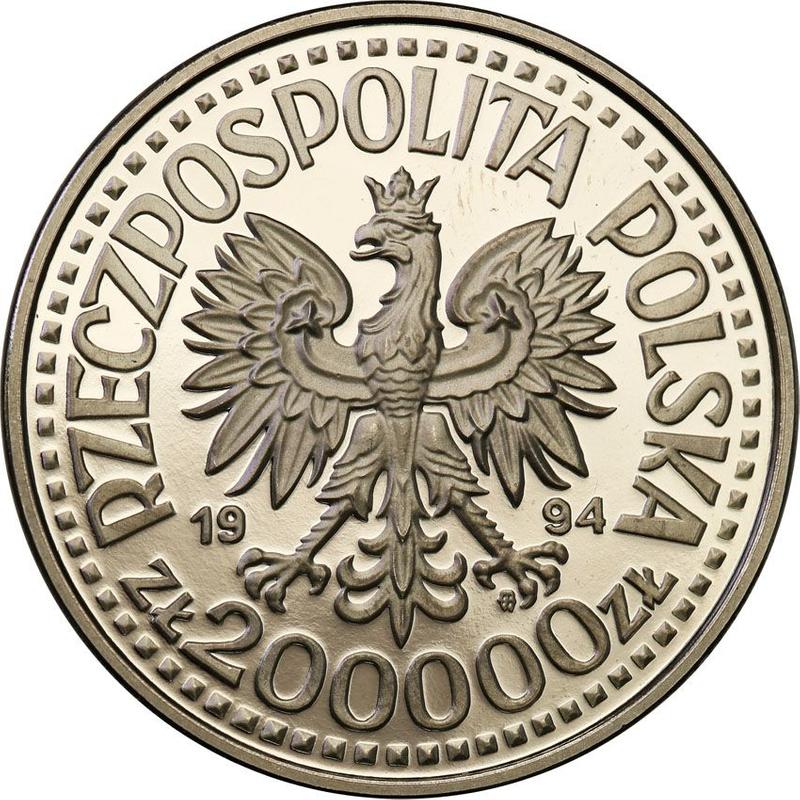 Сколько стоит никелевая монета III Республики до деноминации пробные 200000 злотых 1994 года MW ANR "75 лет Ассоциации инвалидов войны Республики Польша", разновидность - никель?