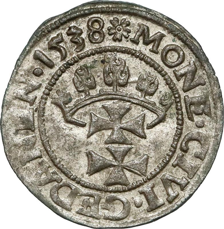 Шеляг 1538 года "Гданьск" (Польша, Сигизмунд I Старый)
