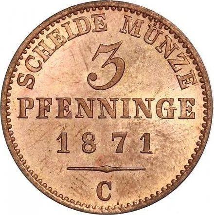 По последним данным на 6 декабря 2025 средняя стоимость медной монеты 3 пфеннига 1871 года с буквами C составляет 70 USD для регулярного чекана и 880 USD для монет отчеканенных по технологии PROOF. Монета выполнена из недрагоценного металла, поэтому в плохой сохранности может иметь карайне низкую стоимость и ликвидность.