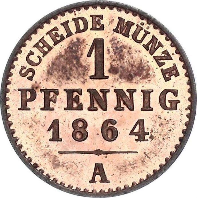По последним данным на 5 декабря 2025 средняя стоимость медной монеты 1 пфенниг 1864 года с буквами A составляет 80 USD для регулярного чекана и 200 USD для монет отчеканенных по технологии PROOF. Монета выполнена из недрагоценного металла, поэтому в плохой сохранности может иметь карайне низкую стоимость и ликвидность.