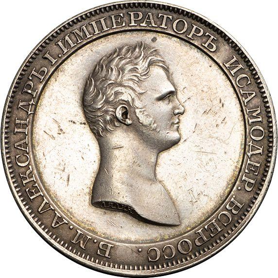 Пробный 1 рубль без года (1808) "Медальный портрет". Надпись на реверсе. Новодел (Россия, Александр I)