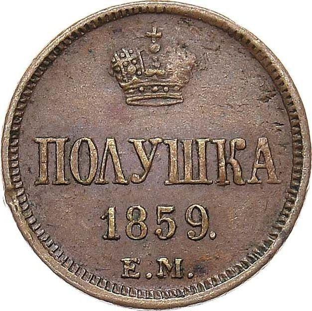 По последним данным на 6 декабря 2025 средняя стоимость медной монеты полушка 1859 года с буквами ЕМ, разновидность - короны малые, составляет 330 USD. Монета выполнена из недрагоценного металла, поэтому в плохой сохранности может иметь карайне низкую стоимость и ликвидность.