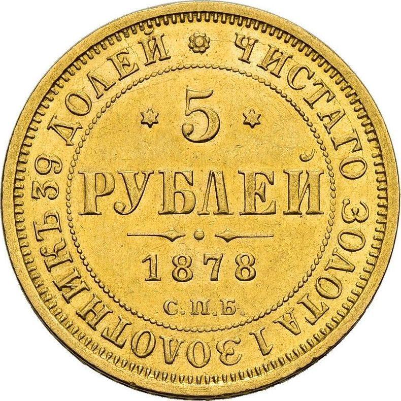 По последним данным на 6 декабря 2025 средняя стоимость золотой монеты 5 рублей 1878 года с буквами СПБ НФ составляет 2400 USD. В монете содержится 5,9972 гр чистого золота, поэтому ниже 809,3 USD продавать монету не рекомендуем, даже если она в плохой сохранности и не представляет коллекционного интереса.