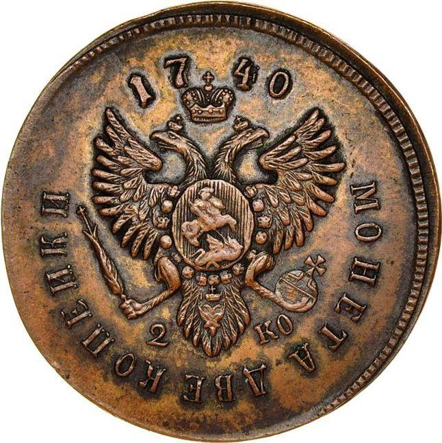 Пробные 2 копейки 1740 года СПБ "Малая голова". Новодел (Россия, Анна Иоанновна)