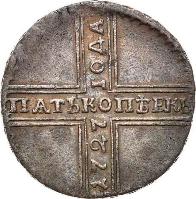 5 копеек 1727 года НД. Дата снизу вверх (Россия, Екатерина I)