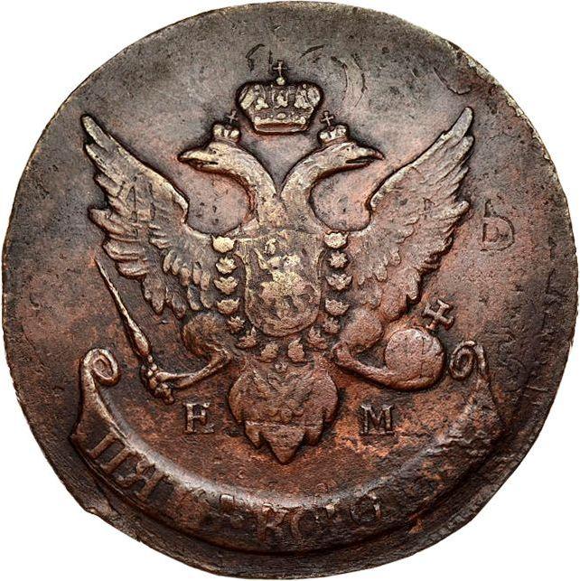 По последним данным на 6 декабря 2025 средняя стоимость медной монеты 5 копеек 1793 года "Павловский перечекан 1797 года" с буквами ЕМ, разновидность - гурт шнуровидный, составляет 170 USD. Монета выполнена из недрагоценного металла, поэтому в плохой сохранности может иметь карайне низкую стоимость и ликвидность.