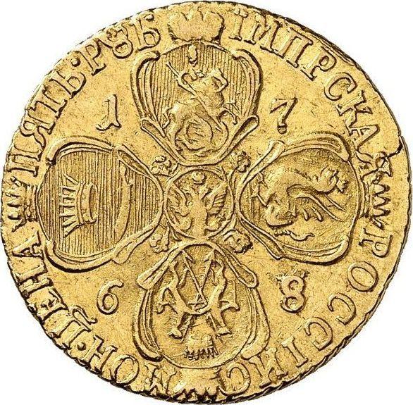 5 рублей 1768 года СПБ "Петербургский тип, без шарфа" (Россия, Екатерина II)