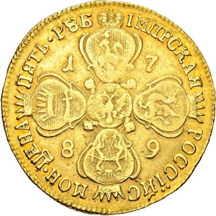Сколько стоит золотая монета Екатерины II 5 рублей 1789 года СПБ?