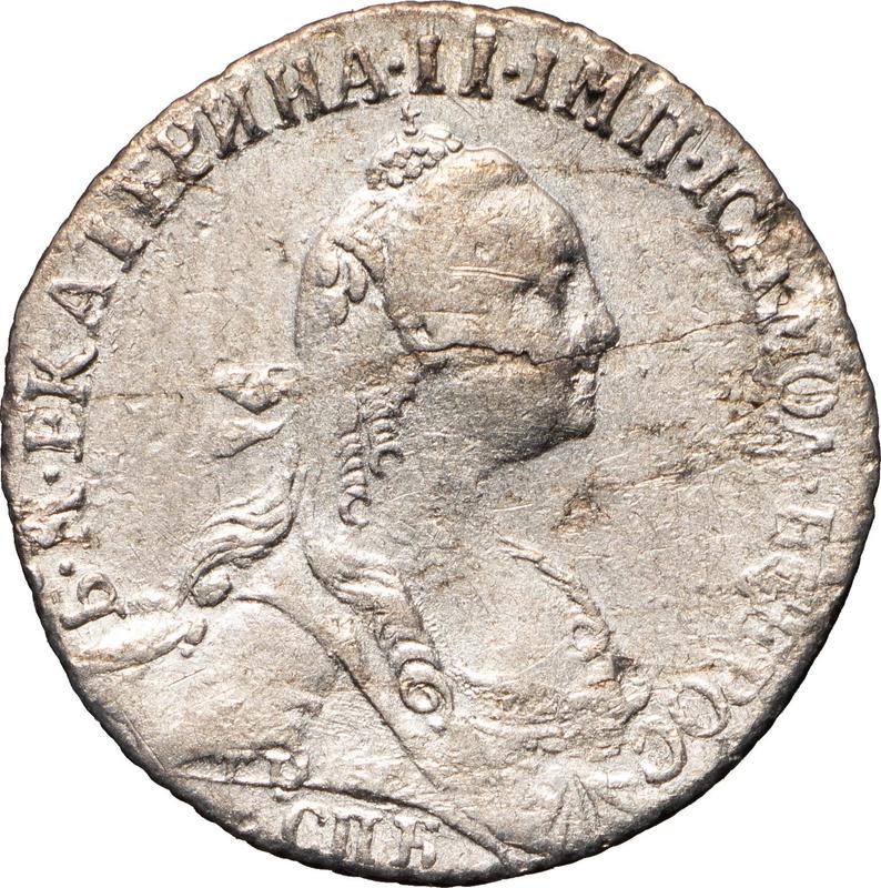 Гривенник 1773 года СПБ T.I. "Без шарфа" (Россия, Екатерина II)