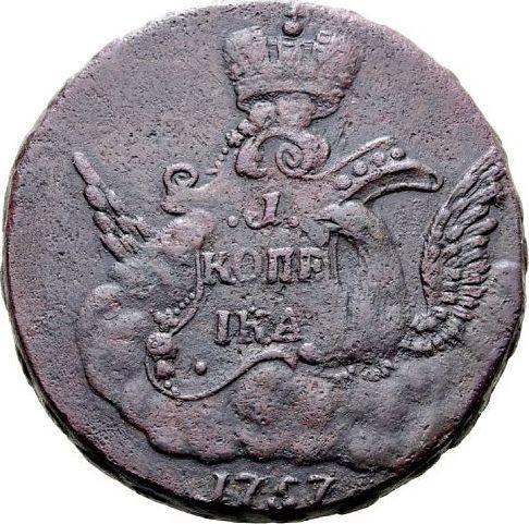 1 копейка 1757 года "Орел в облаках". Без знака монетного двора. Гуртовая надпись екатеринбургская (Россия, Елизавета)