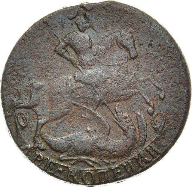 2 копейки 1757 года "Номинал под Св. Георгием". Гурт надпись (Россия, Елизавета)