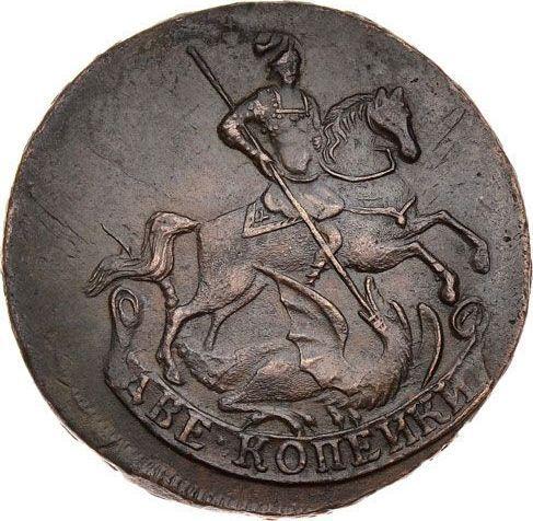 2 копейки 1758 года "Номинал под Св. Георгием". Гурт надпись (Россия, Елизавета)