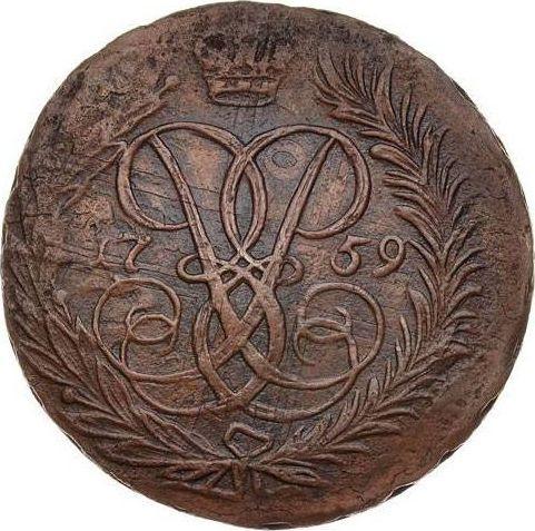 2 копейки 1759 года "Номинал над Св. Георгием". Гурт сетчатый (Россия, Елизавета)