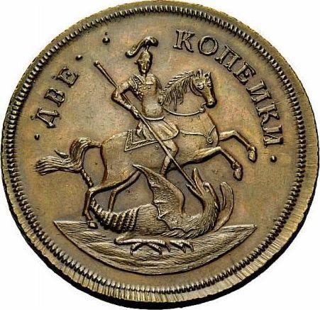 2 копейки 1757 года "Номинал над Св. Георгием". Новодел (Россия, Елизавета)