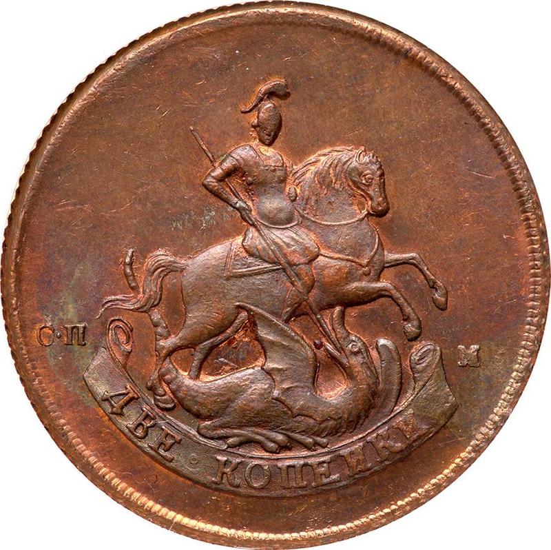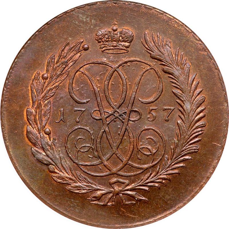 Узнайте актуальную стоимость российской монеты 2 копейки 1757 года "Номинал под Св. Георгием" со знаком СПМ. Новодел. Это медная монета периода Елизаветы Петровны отчеканена на Санкт-Петербургском монетном дворе. Рекорд цены принадлежит лоту 1333 проданному на аукционе Ira & Larry Goldberg Coins & Collectibles, Inc. за 1860 USD. Торги состоялись 14 февраля 2022.