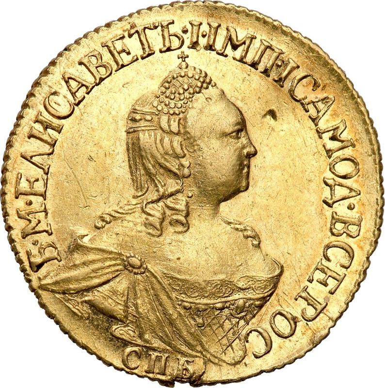 Сколько стоит золотая монета Елизаветы Петровны 2 рубля 1756 года СПБ?