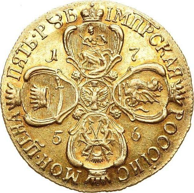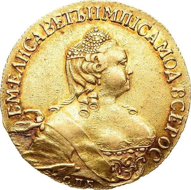 Сколько стоит золотая монета Елизаветы Петровны 5 рублей 1756 года СПБ?