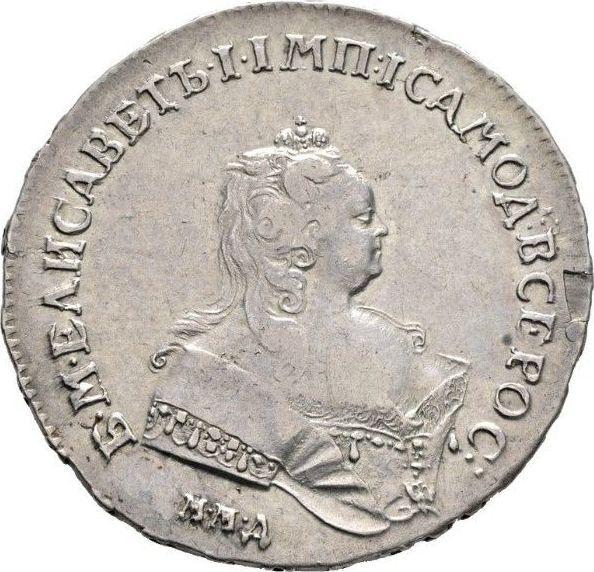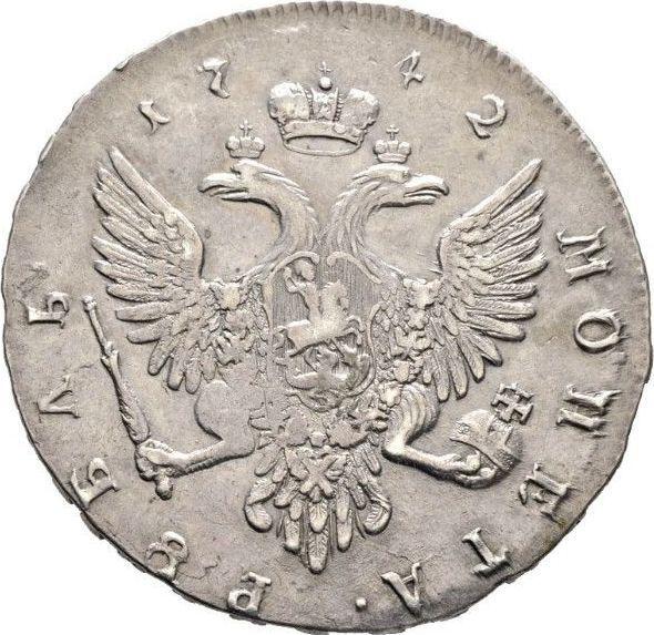 1 рубль 1742 года ММД "Московский тип". Край корсажа V-образный (Россия, Елизавета)