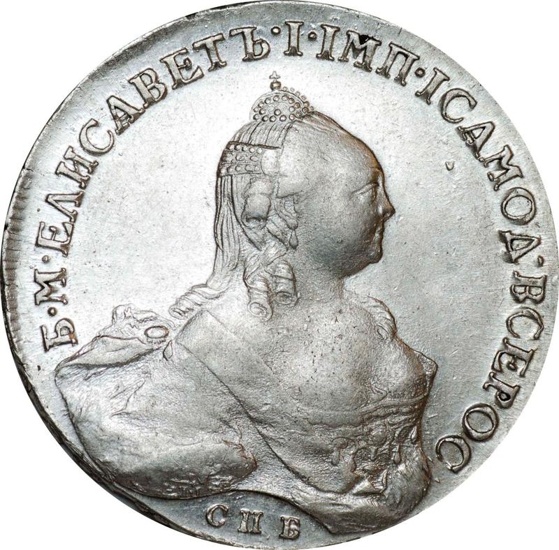 Сколько стоит серебряная монета Елизаветы Петровны 1 рубль 1761 года СПБ ЯI "Портрет работы Тимофея Иванова", разновидность - два коротких локона на плече?