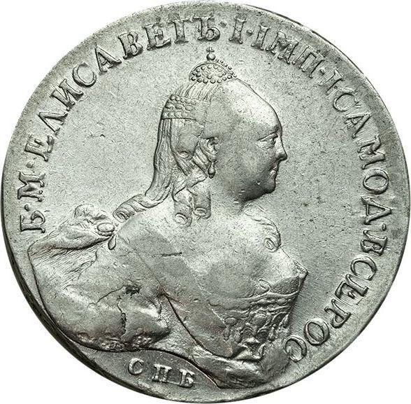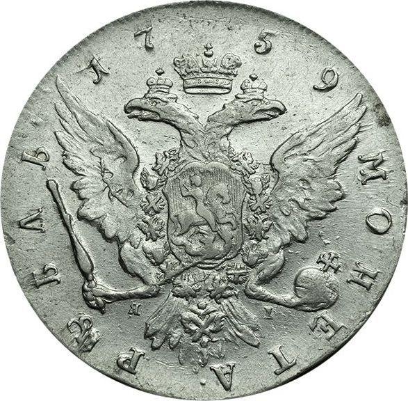 1 рубль 1759 года СПБ ЯI "Портрет работы Тимофея Иванова" (Россия, Елизавета)