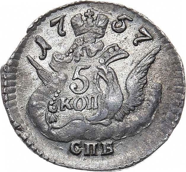 5 копеек 1757 года СПБ "Орел в облаках" (Россия, Елизавета)