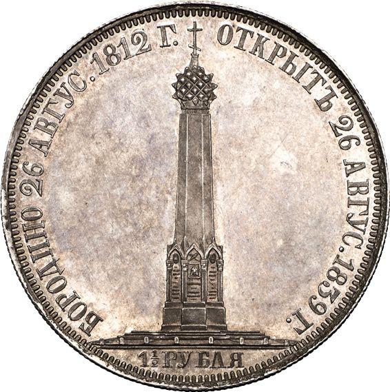 1 1/2 рубля 1839 года Н. CUBE F. "В память открытия памятника-часовни на Бородинском поле". Короткие лучи над головой (Россия, Николай I)
