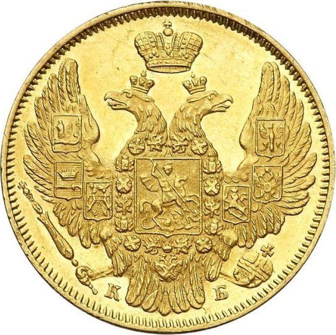 Сколько стоит золотая монета Николая I 5 рублей 1845 года СПБ КБ?