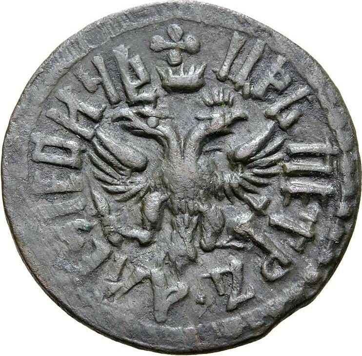 Полушка ҂АΨИ (1708) года "ВСЕЯ РОССИИ САМОДЕРЖЕЦЬ" (Россия, Петр I)