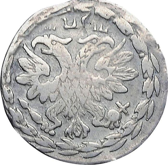 10 денег ҂АΨД (1704) года. Орнамент из листьев (Россия, Петр I)
