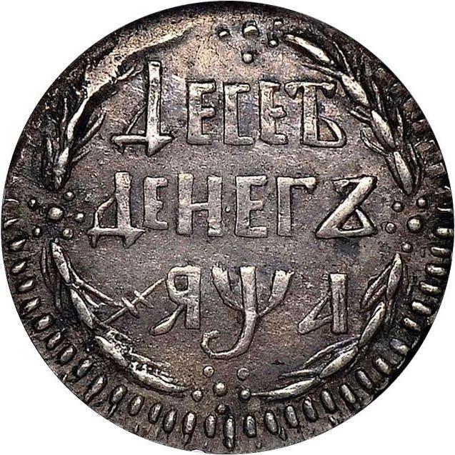 По последним данным на 5 декабря 2025 средняя стоимость серебряной монеты 10 денег ҂АΨА (1701) года, разновидность - новодел, малый орел, составляет 1600 USD.