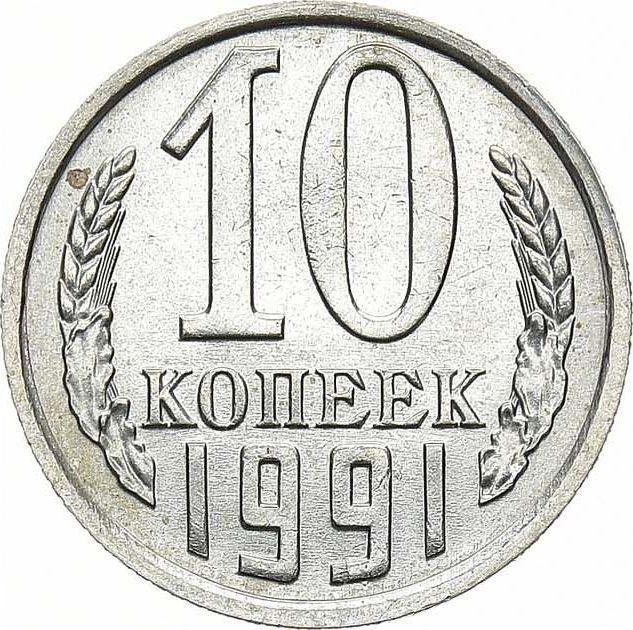 10 копеек 1991 года "Тип 1961-1991". Без знака монетного двора (Россия, РСФСР и СССР)