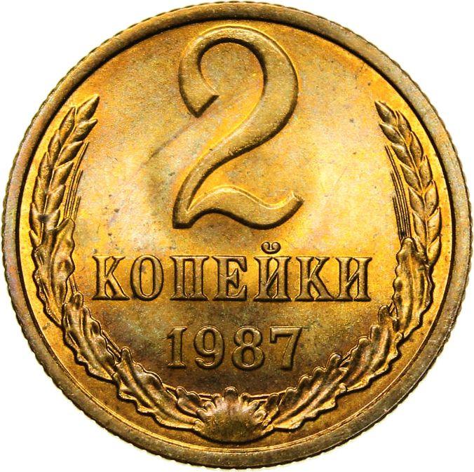 Сколько стоит томпаковая монета РСФСР и СССР 2 копейки 1987 года?