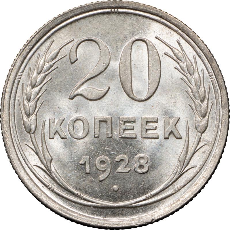 20 копеек 1928 года. Узкие буквы в "СССР" (Россия, РСФСР и СССР)