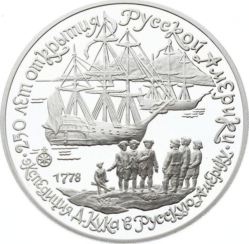 Сколько стоит серебряная монета РСФСР и СССР 3 рубля 1990 года ЛМД "Экспедиция Д. Кука"?