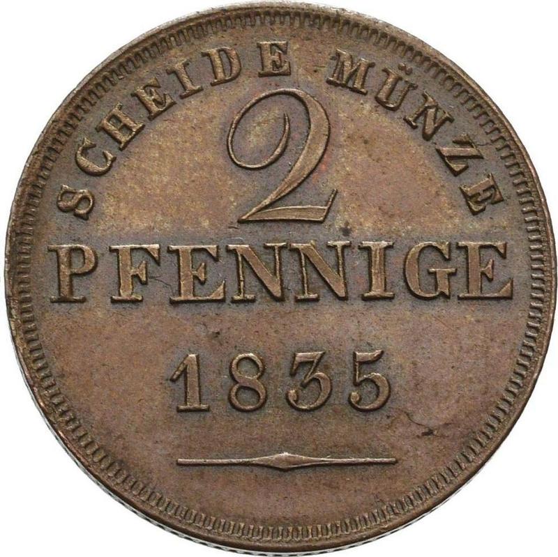 2 пфеннига 1835 года (Саксен-Кобург-Гота, Эрнст I)