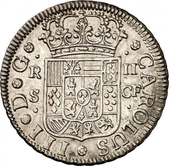 Сколько стоит серебряная монета Карла III 2 реала 1768 года S CF?