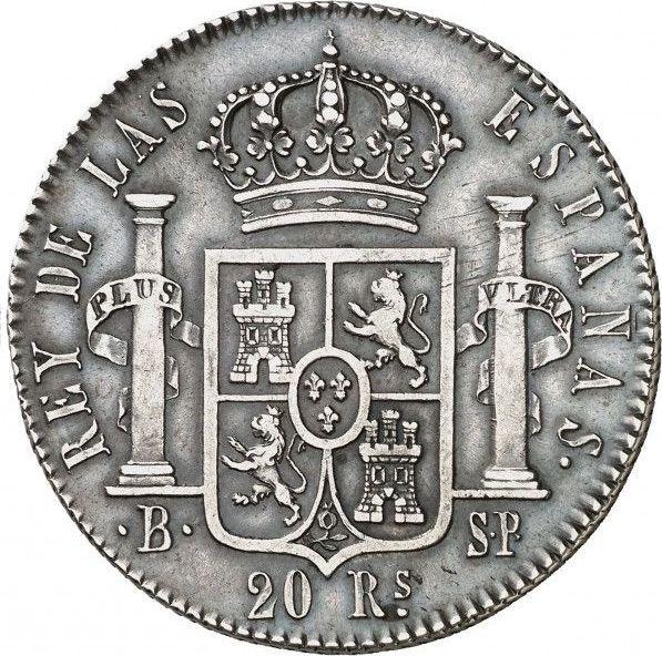 Сколько стоит серебряная монета Фердинанда VII 20 реалов 1822 года B SP?