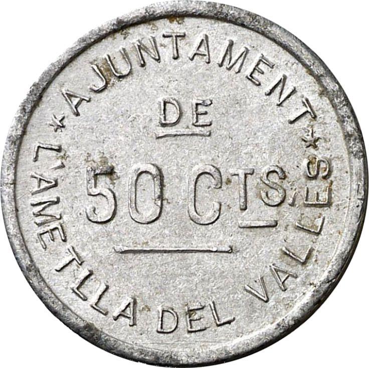 50 сентимо без года (1936-1939) "Л’Амеллья-дель-Вальес". С надписью (Испания, II Республика)