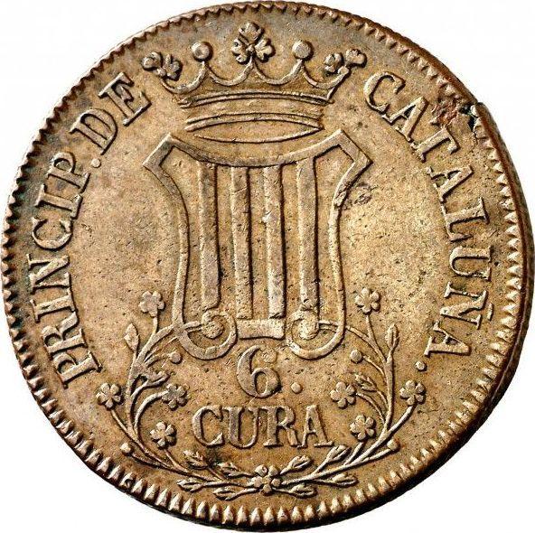 6 куарто 1838 года "Каталония". Надпись "6 CURA" (Испания, Изабелла II)