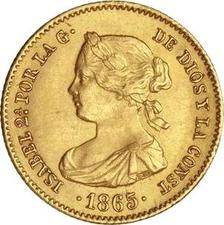 Золотые монеты 4 эскудо Изабеллы II - Испания
