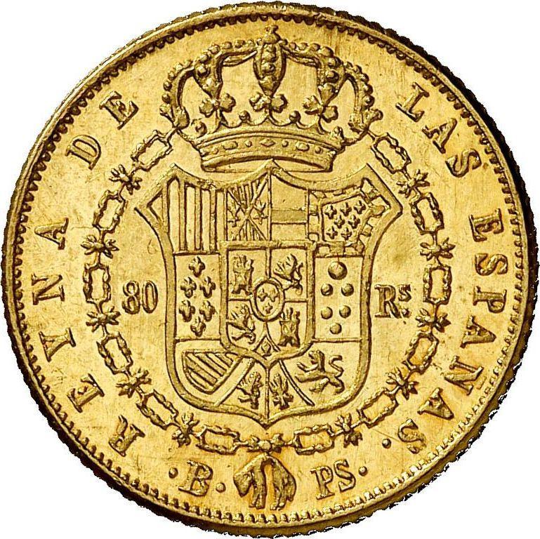 Сколько стоит золотая монета Изабеллы II 80 реалов 1848 года B PS?