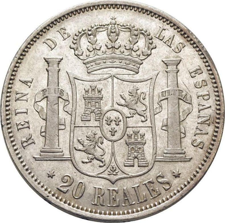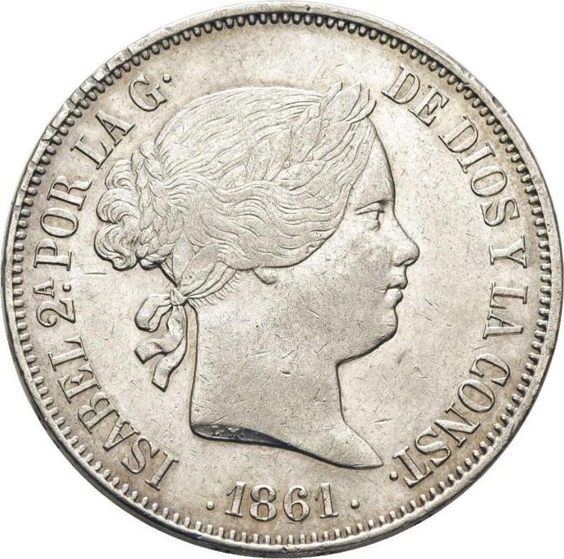 20 реалов 1861 года "Тип 1855-1864". Шестиконечные звёзды (Испания, Изабелла II)