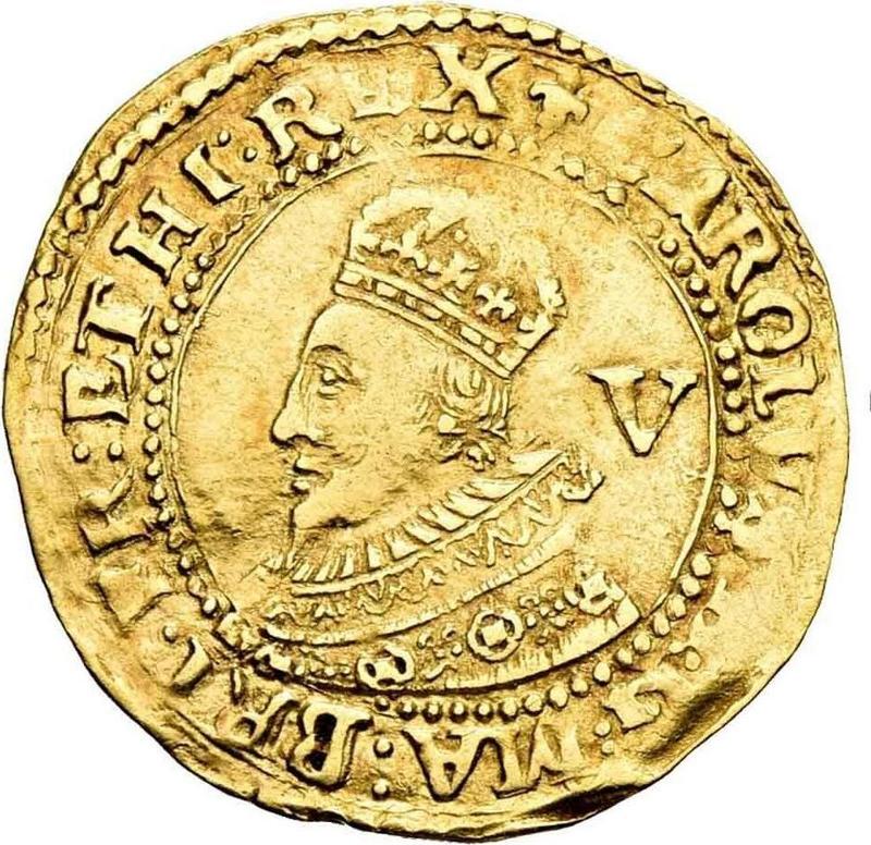 Сколько стоит золотая монета Карла I 1 крона без года (1625-1642) "Первый бюст"?