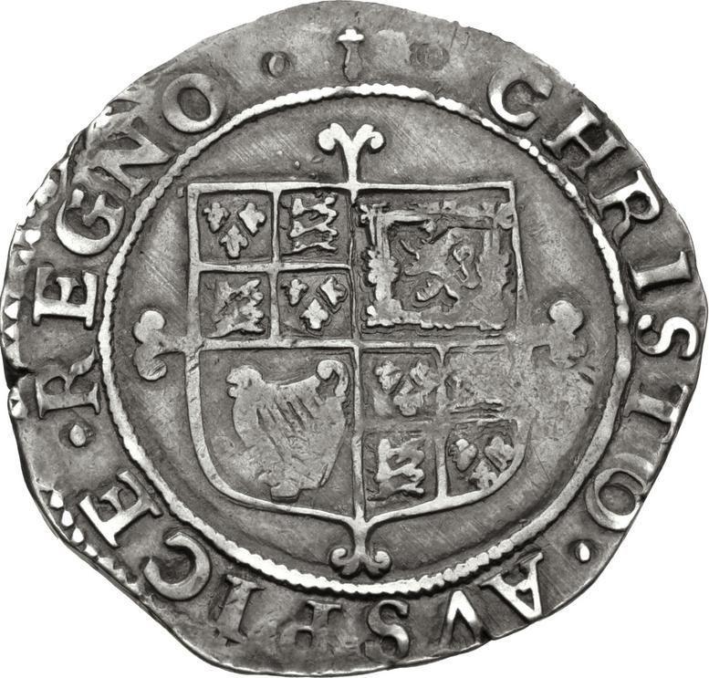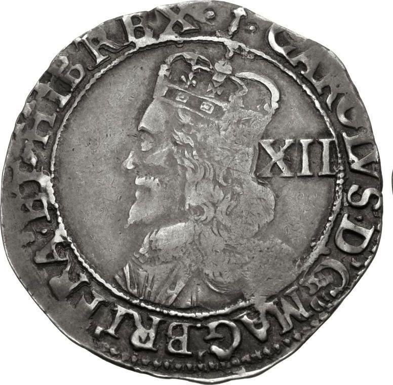 Сколько стоит серебряная монета Карла I 1 шиллинг без года (1642-1649) "Седьмой тип портрета", разновидность - укороченный широкий бюст?
