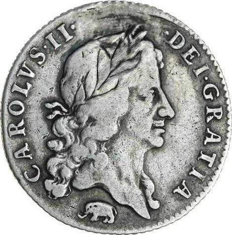Сколько стоит серебряная монета Карла II 1 шиллинг 1666 года "Портрет золотой гинеи"?